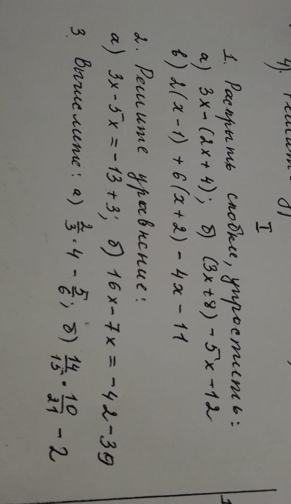 1) а) 3х-(2х+4)=3х-2х-4=1х-4.