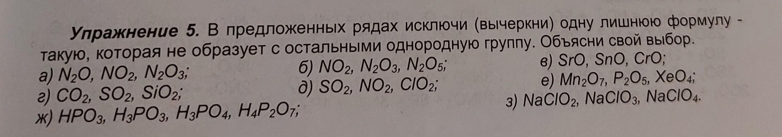 в предложенных рядах исключи одну лишнюю формулу - такую, которая не образует с остальными однородную группу