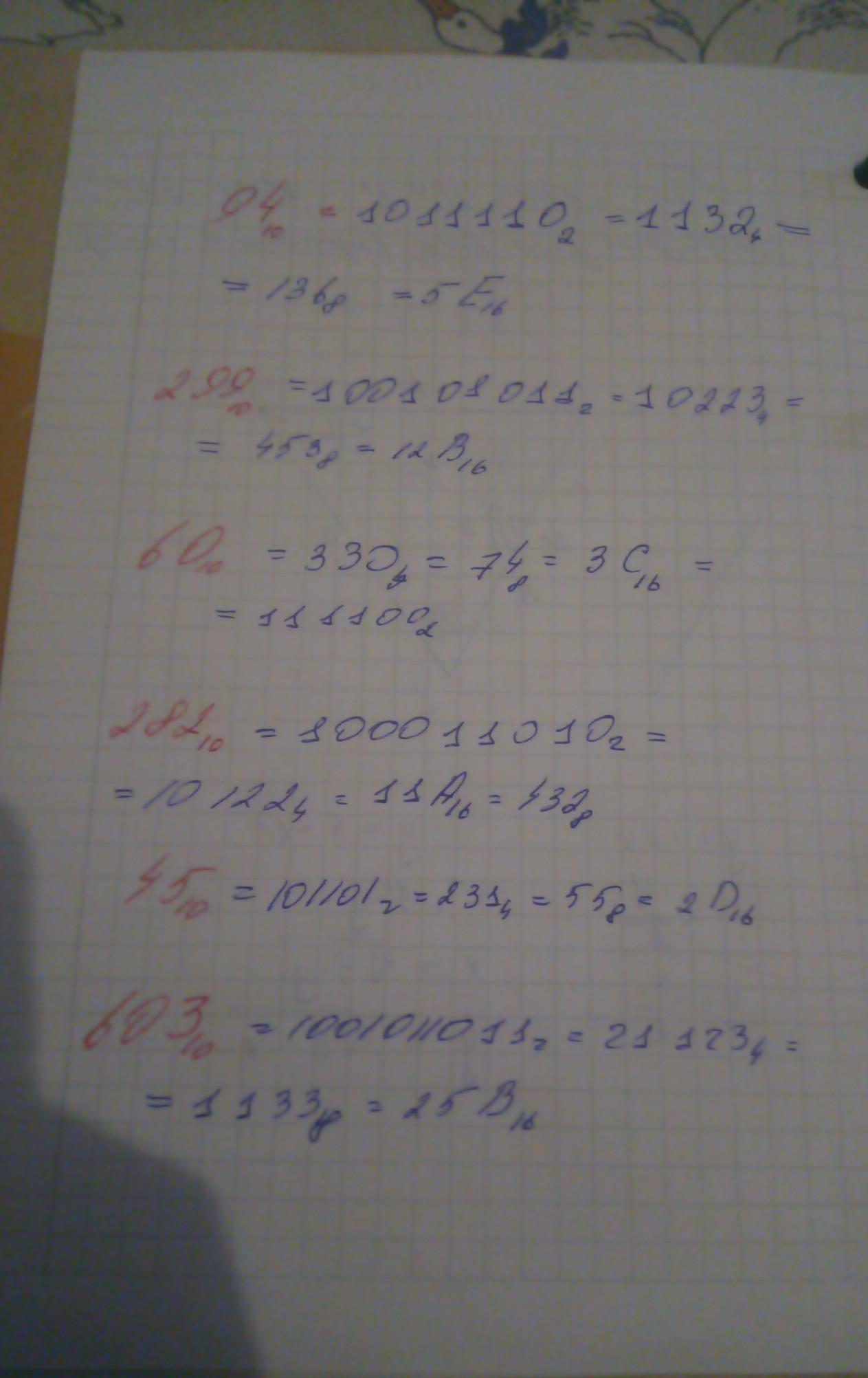Задание. Перевести числа в двоичную, восьмеричную и шестнадцатеричную системы счисления