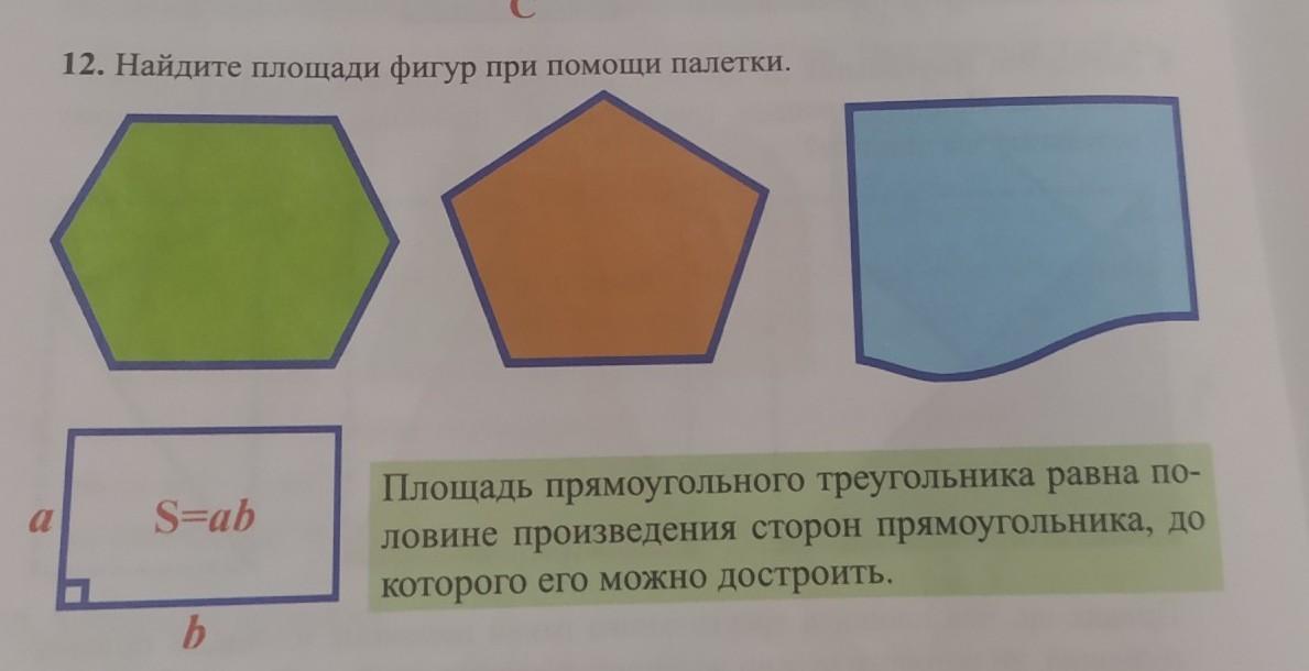попробуй измерить стороны прямоугольника а и б их произведение раздели на 2 вот тебе и площадь прямоугольного треугольника
