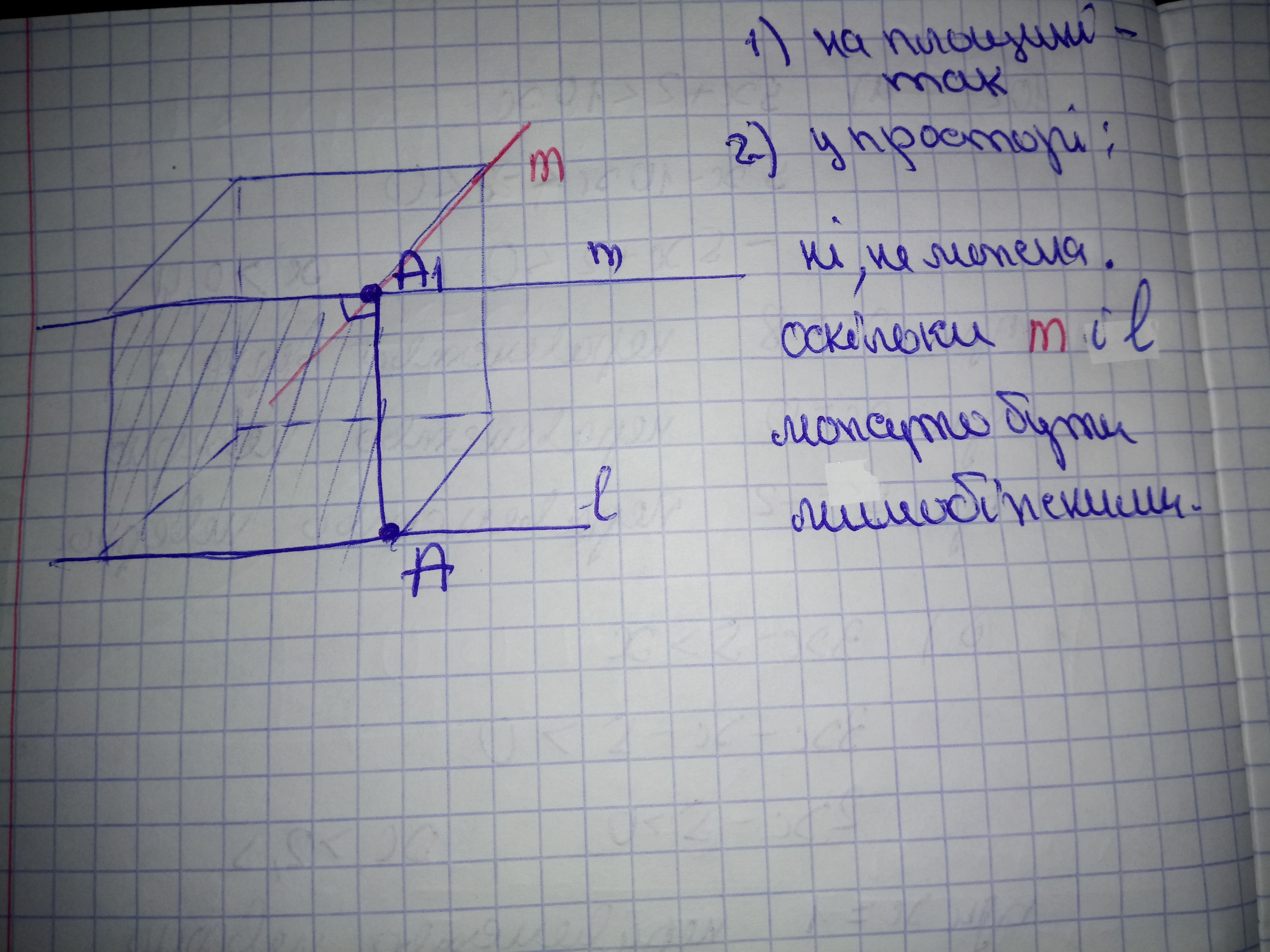 через точку А прямої l до неї проведено перпендикуляр АА1. через точку А1 проведено пряму m, перпендикулярну до прямої АА1. чи можна стверджувати, що прямі l і m паралельні: 1) на площині; 2) у просторі