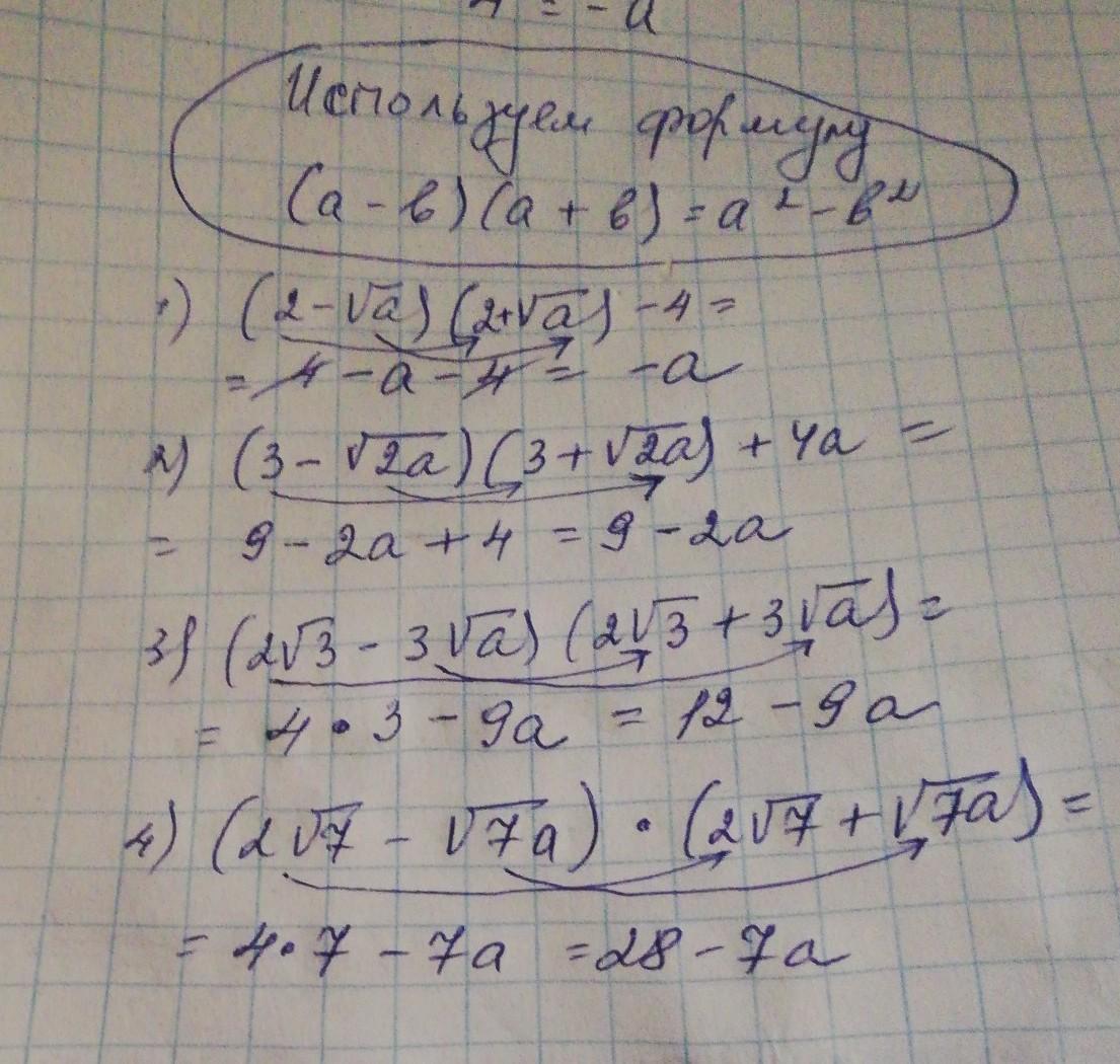 4) (2√7-√7а)(2√7+√7а)=4×7-7а=28-7а
