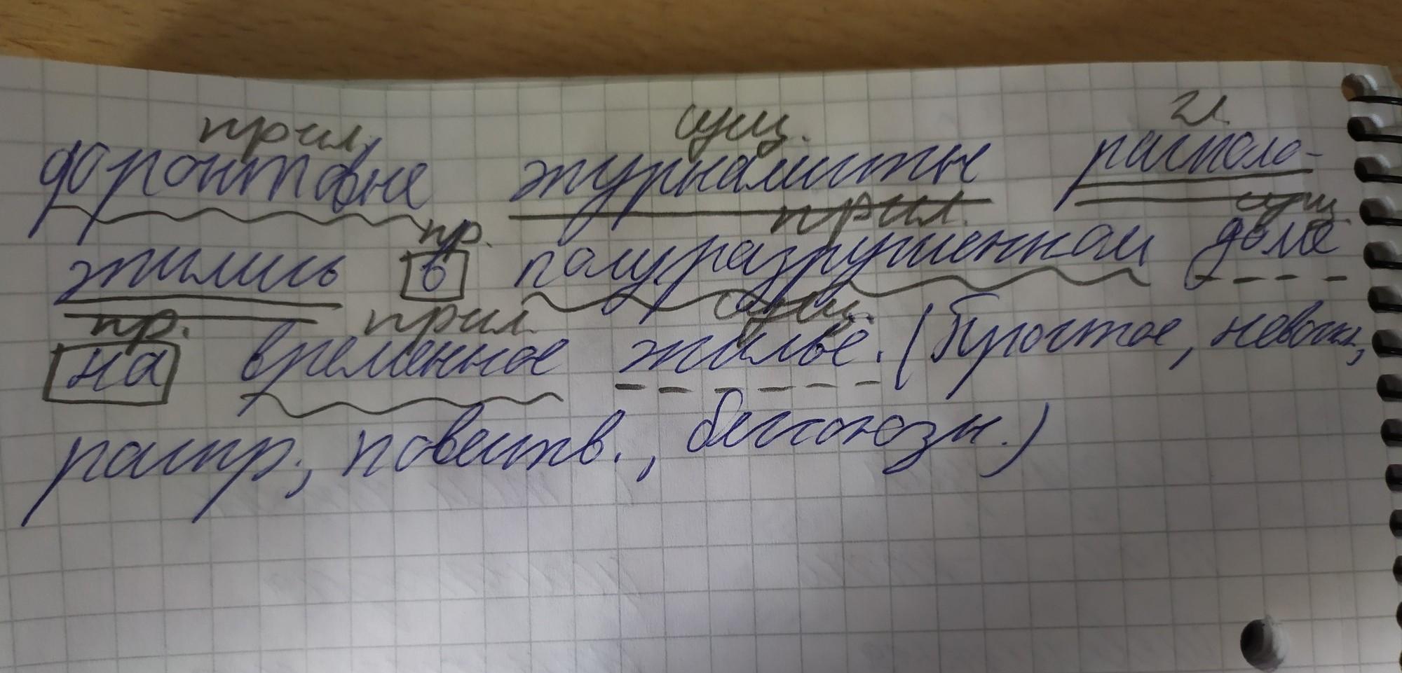 фронтовые журналисты расположились в полуразрушенном доме на временное житьё синтаксический разбор