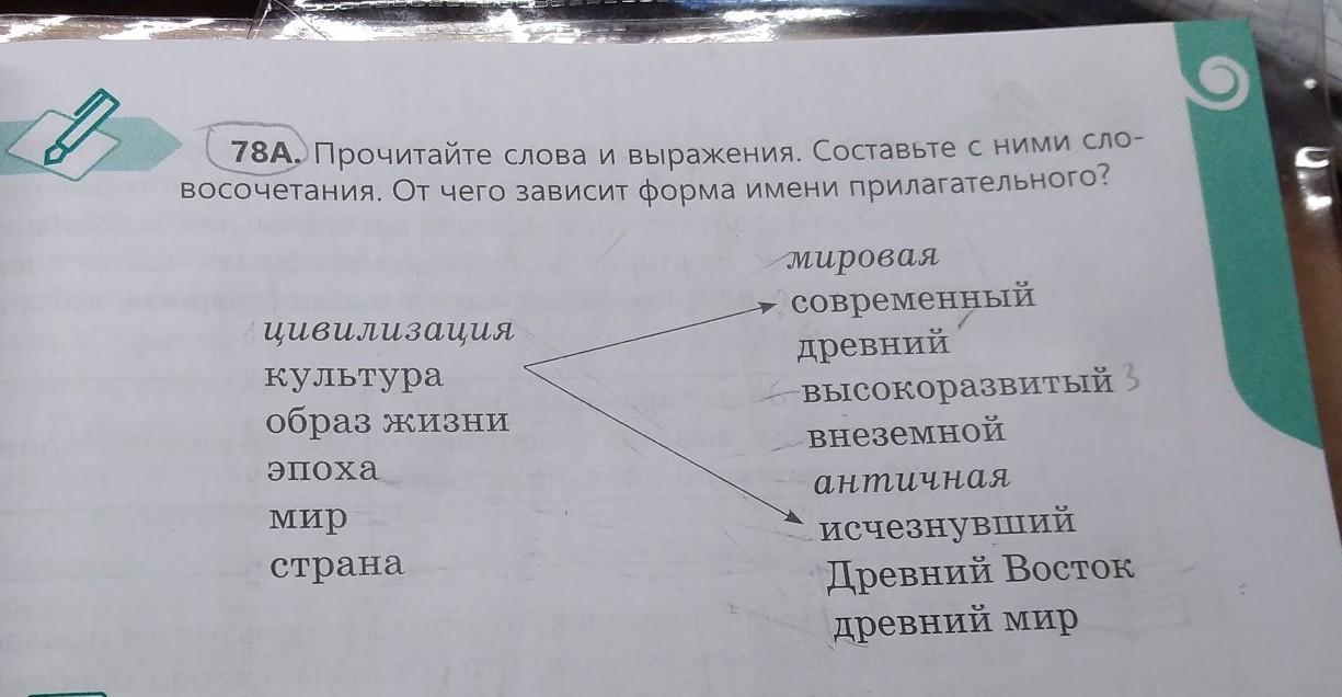 Цивилизация (ед.ч., жен.р.) мировая (ед.ч., жен.р.), античная (ед.ч., жен.р.);