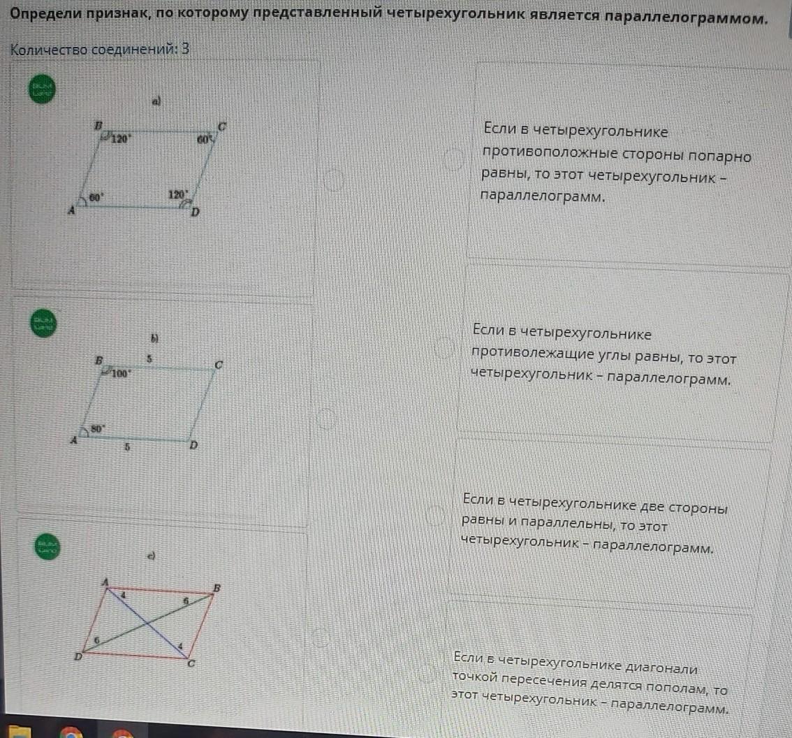 3 — Если в четырехугольнике диагонали точки пересечения делятся пополам, то этот четырехугольник – параллелограмм