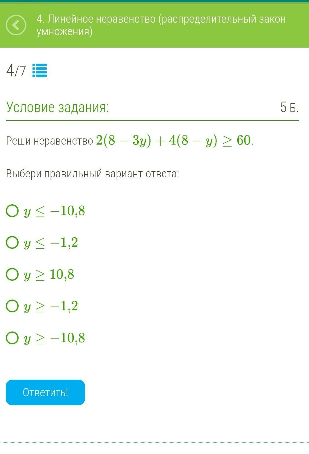 Ответ: у≤-1,2 (2)