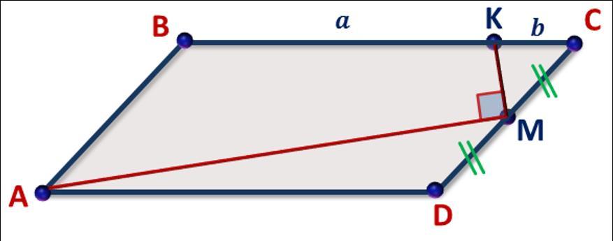 Точка М середина стороны CD параллелограмма ABCD. Точка К делит его сторону BC на отрезки с длинами а (альфа) и ß (бета) так, что угол AMK = 90. Найдите AK. Срочно!