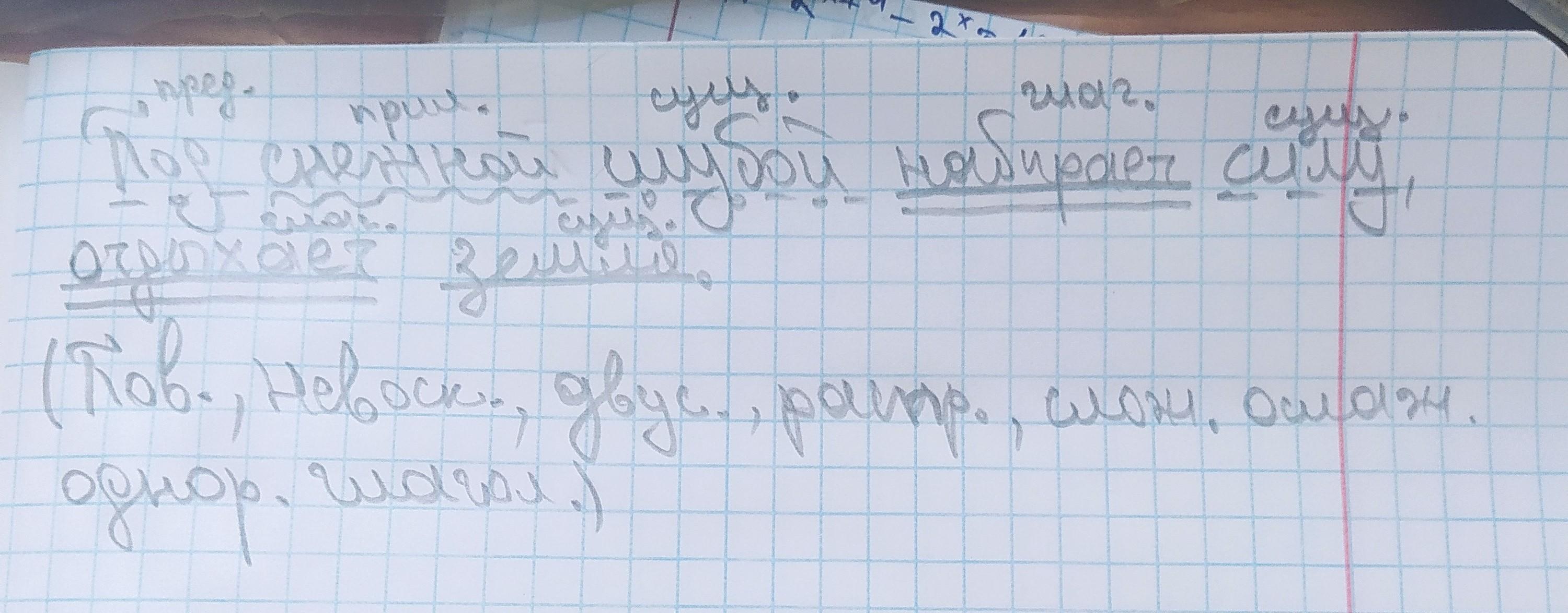 синтаксический разбор предложения под снежной шубой набирает силу, отдыхает земля