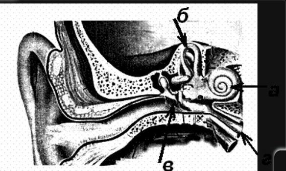 Давление на барабанную перепонку в ухе человека выравнивается с помощью структуры обозначенная на рисунке буквы