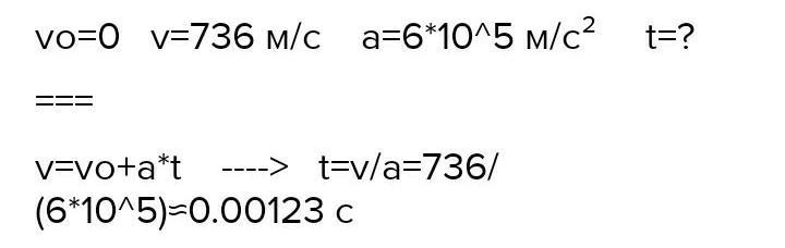 Из состояния покоя при выстреле пуля развивает скорость до 725 м/с с ускорением 600 000 м/с2.