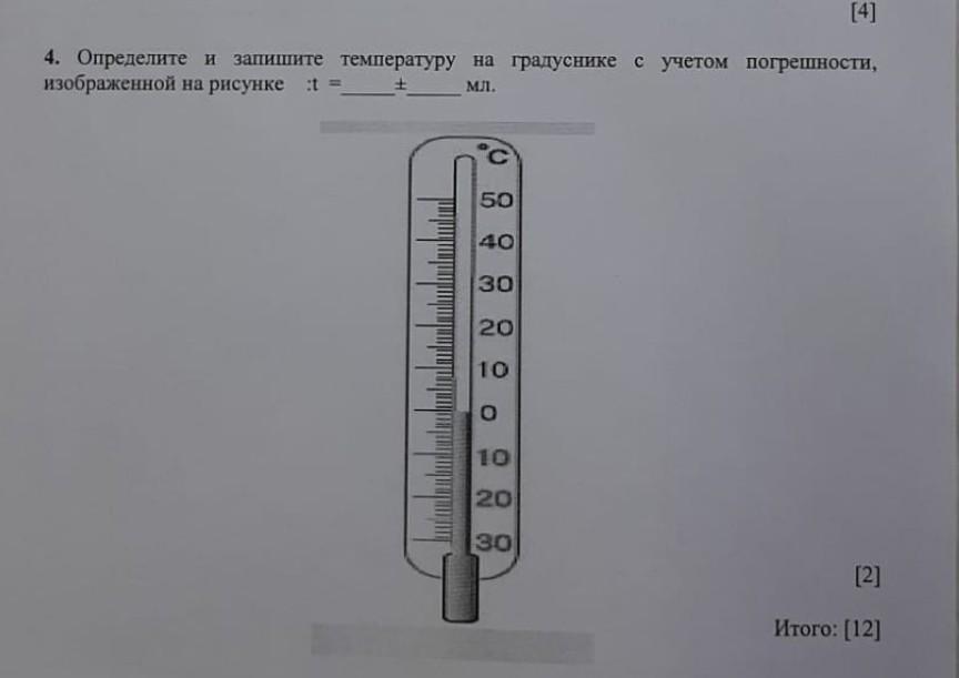 4. Определите и запишите температуру на градуснике с учетом погрешности, изображенной на рисунке. помогите пожалуйста.