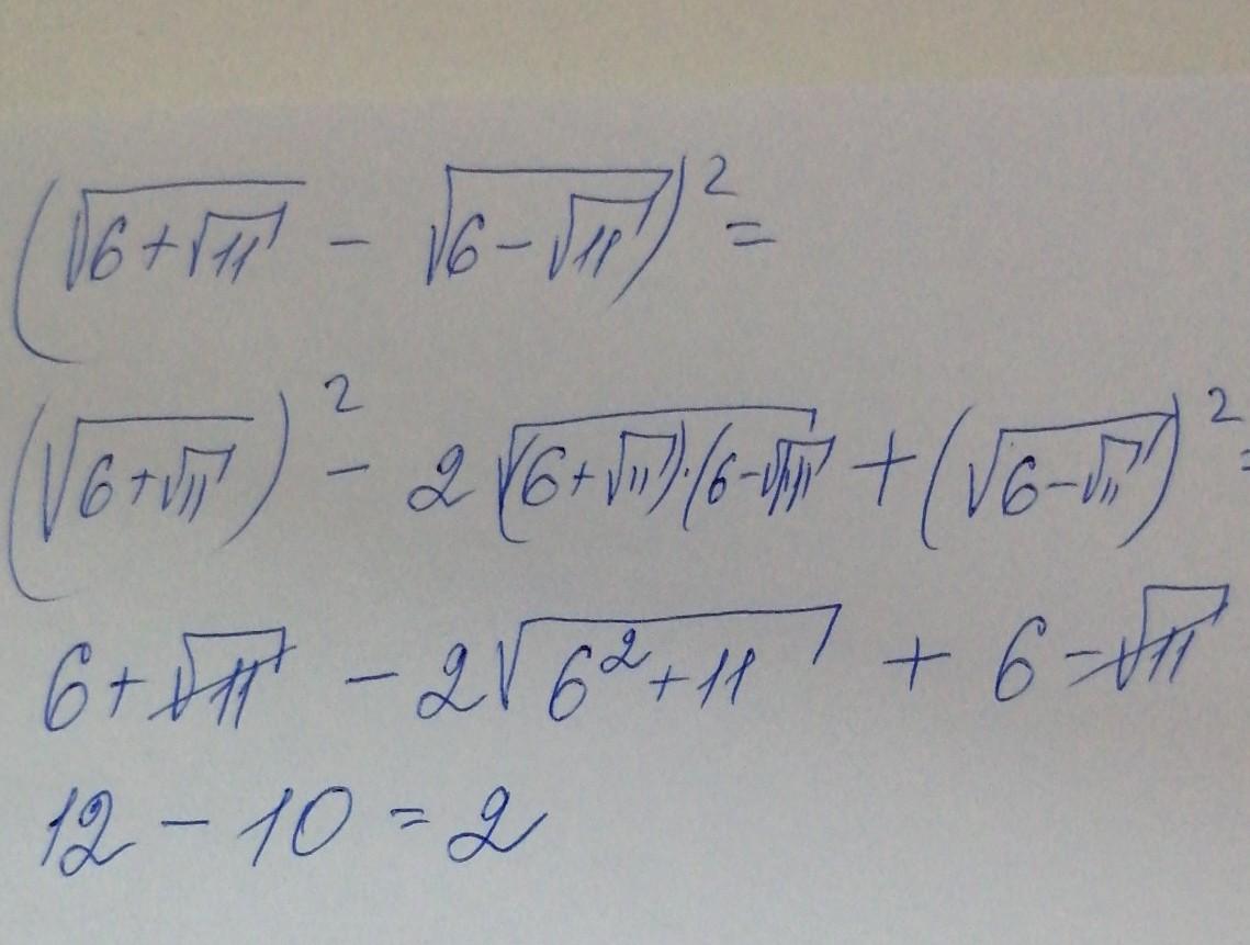 (квадратный корень 6+квадратный корень11 - квадратный корень 6-квадратный корень11)²