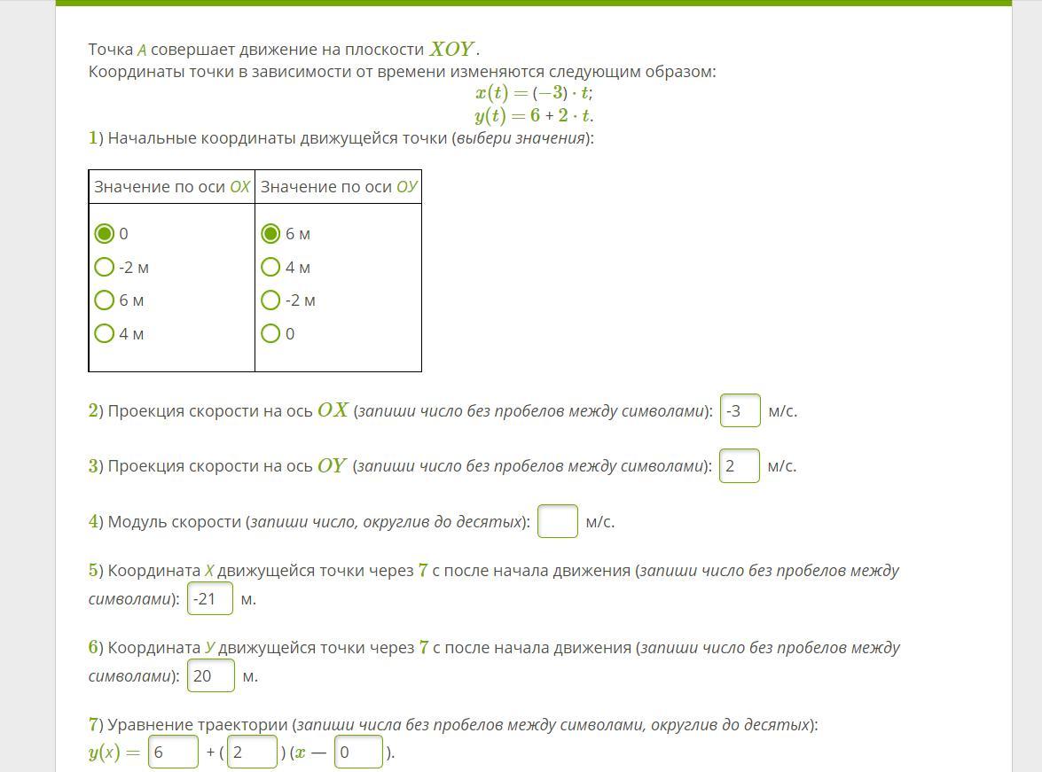 4) модуль скорости v²=(v(по х))²+(v(по у)) ²=
