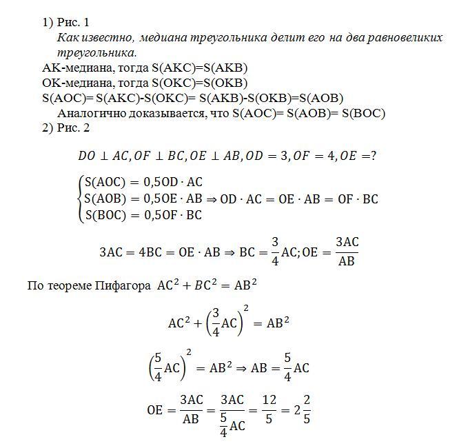 Точка пересечения медиан прямоугольного треугольника удалена от катетов на расстояния 3 и 4. Найдите расстояние от этой точки до гипотенузы.