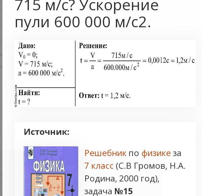 Из состояния покоя при выстреле пуля развивает скорость до 701 м/с с ускорением 600 000 м/с2.