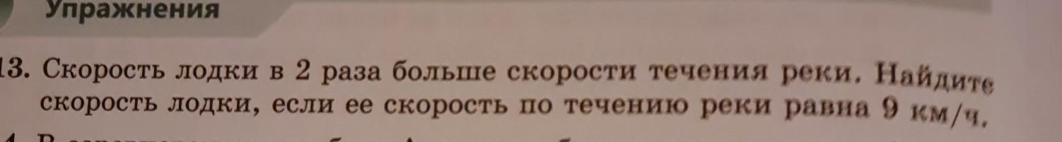 Скорость лодки в 2 раза больше скорости течения реки. Найдите скорость лодки, если её скорость по течению рекиравна 9 км/ч.