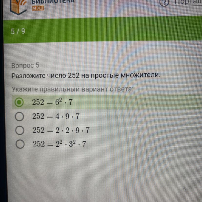 252 =2 * 2 * 3 * 3 * 7 = 2^2 * 3^2 *7