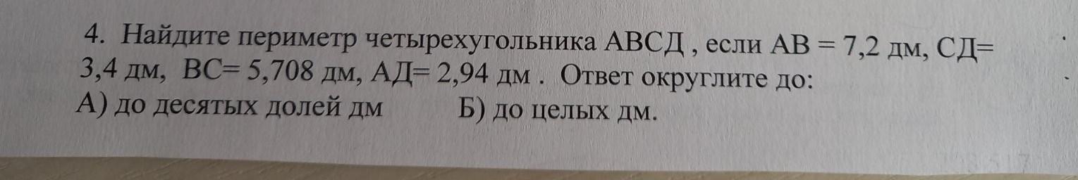 Pавсд = 7.2 + 3.4 + 5.708 + 2.94 = 19.248дм