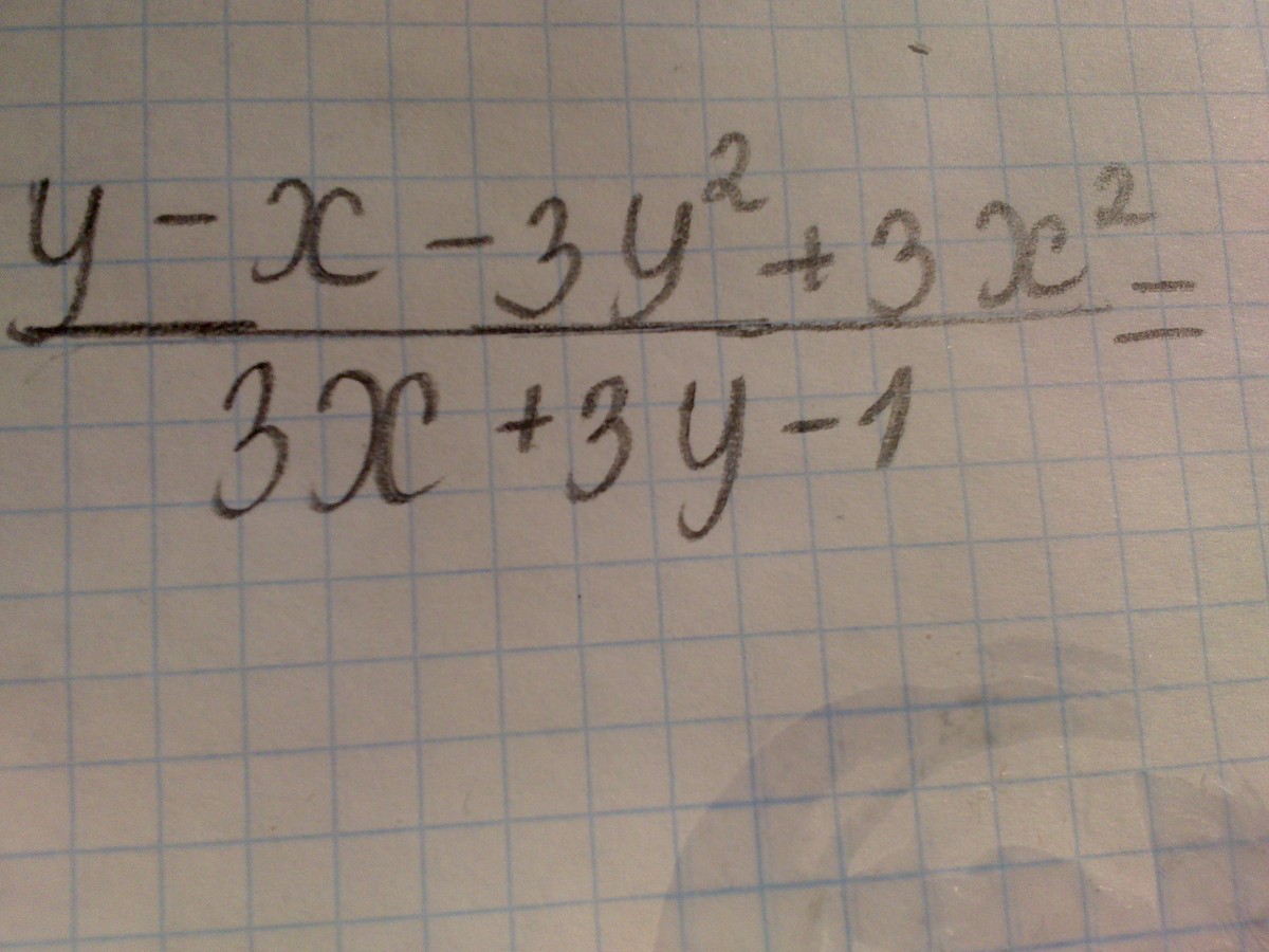 3x сокращается с крадратом 3x2 3y тоже сокращается остается -y-x-3y+3x