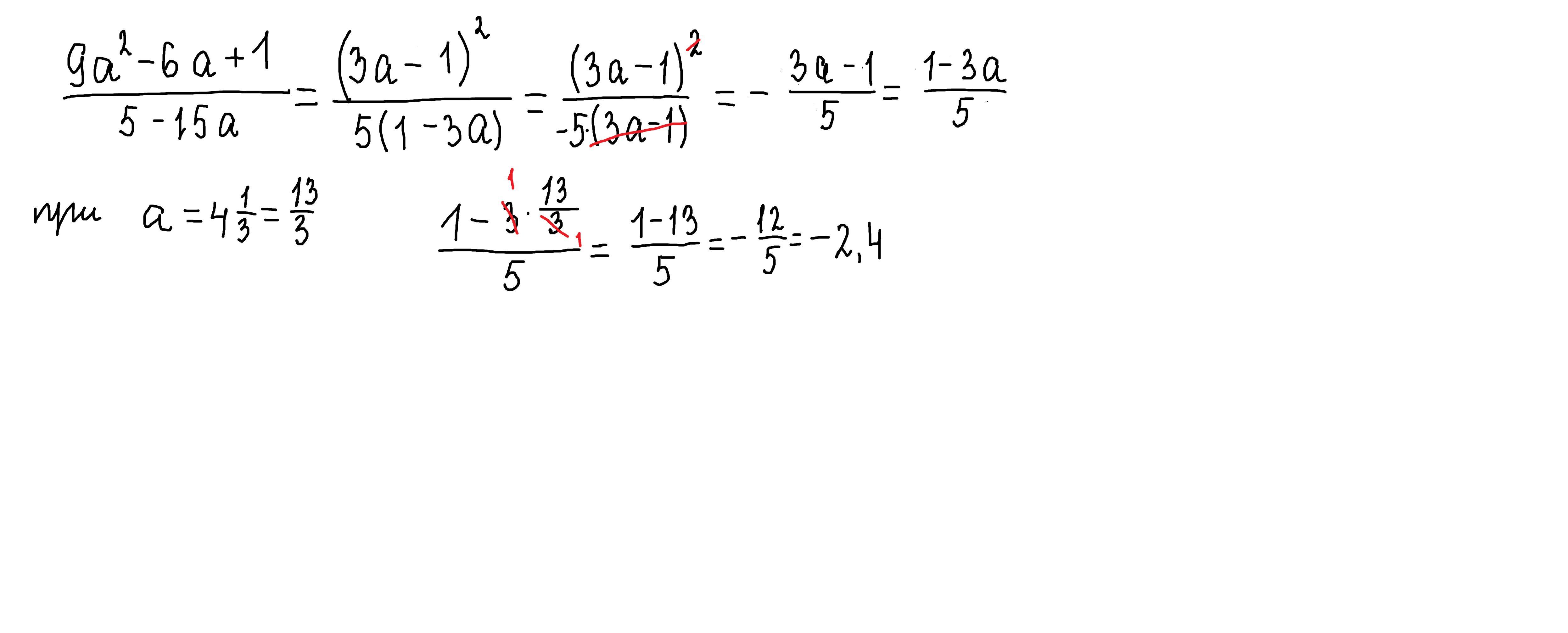 применим к числителю формулу (а-в)²=а²-2ав+в²,сократим дробь и найдем ее значение.