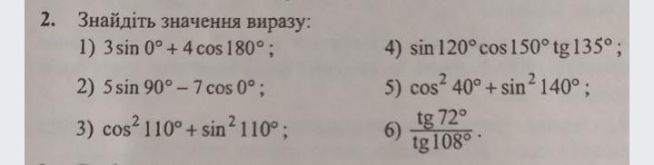 3)cos²110°+sin²110°=1 (основное тригонометрическое тождество)