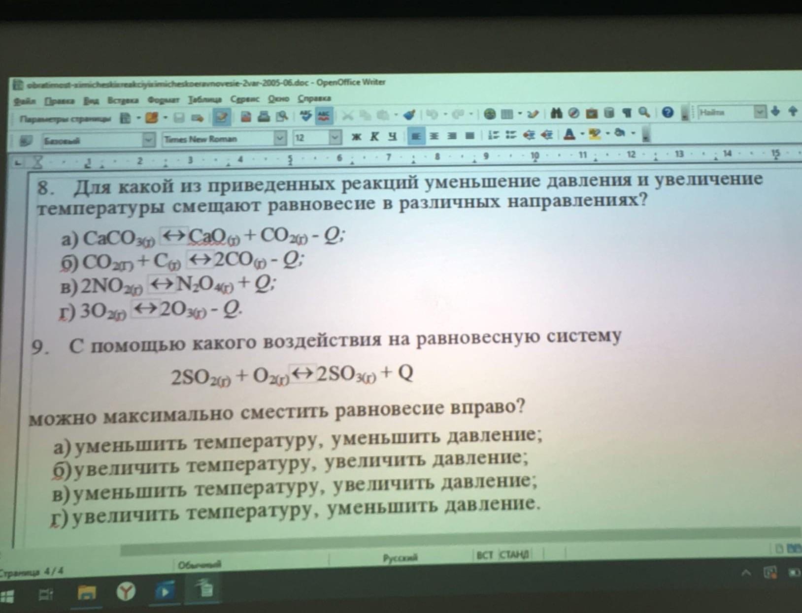 8. г) при уменьшении давления равновесие сместится в сторону реагентов, при увеличении температуры равновесие сместится вправо