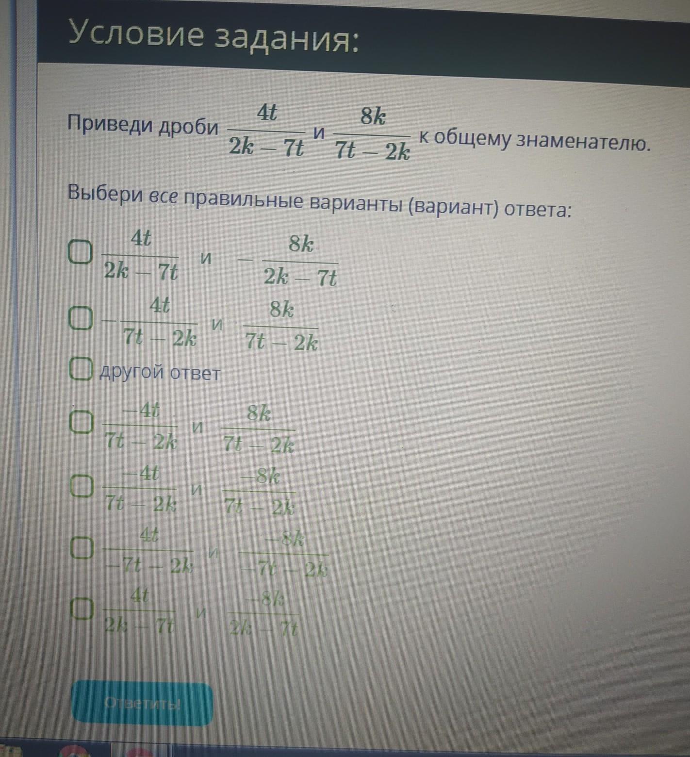 \frac{ - 4t}{7t - 2k} u \frac{8k}{7t - 2k}  =  -  \frac{32ktu}{(7 t - 2k) {}^{2} }