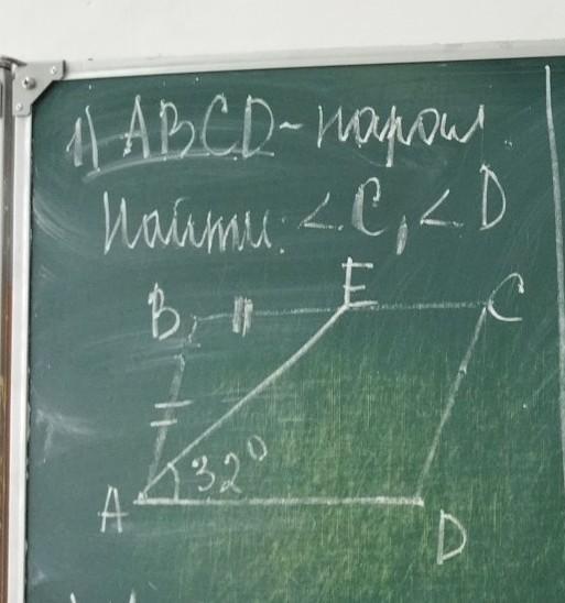 1) <A=<E= 32° (накрест. леж. углы)