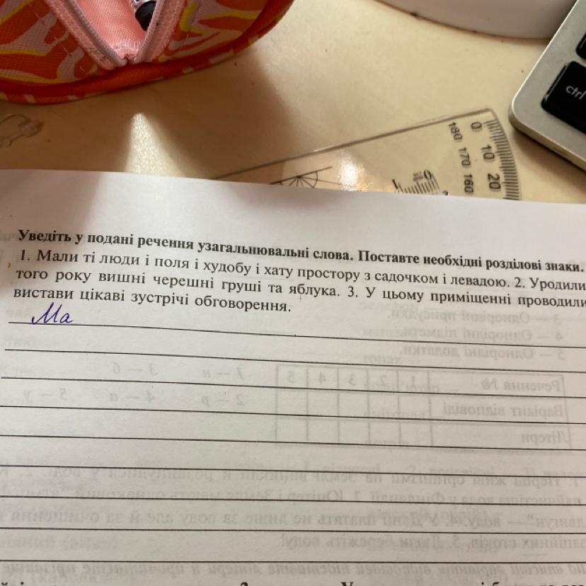 6. Уведіть у подані речення узагальнювальні слова. Поставте необхідні розділові знаки.