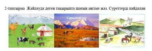 2-тапсырма Жайлауда деген такырыпта шағын әнгіме жаз. Суреттерді пайдалан можно коротко