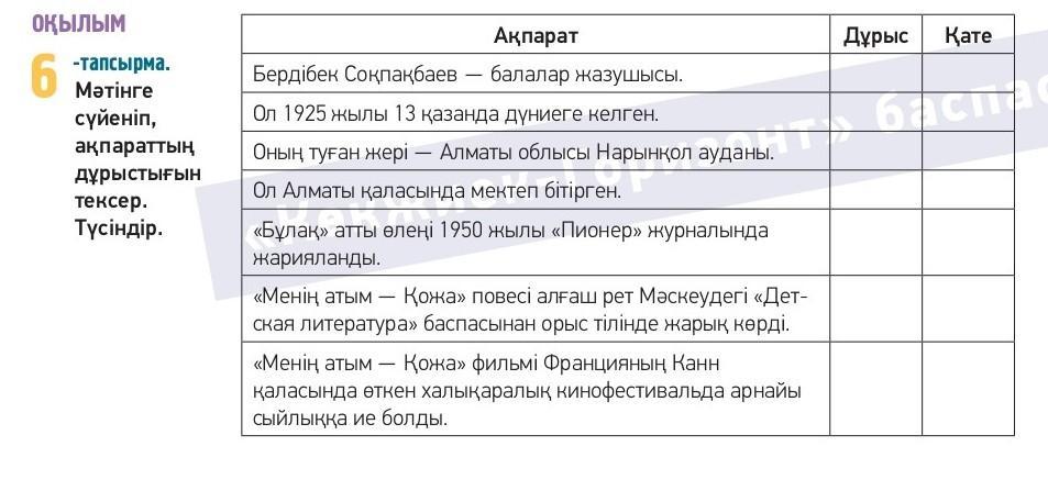 6-тапсырма. Мәтінге сүйенып, ақпараттың дұрыстығын тексер.Түсіндір.