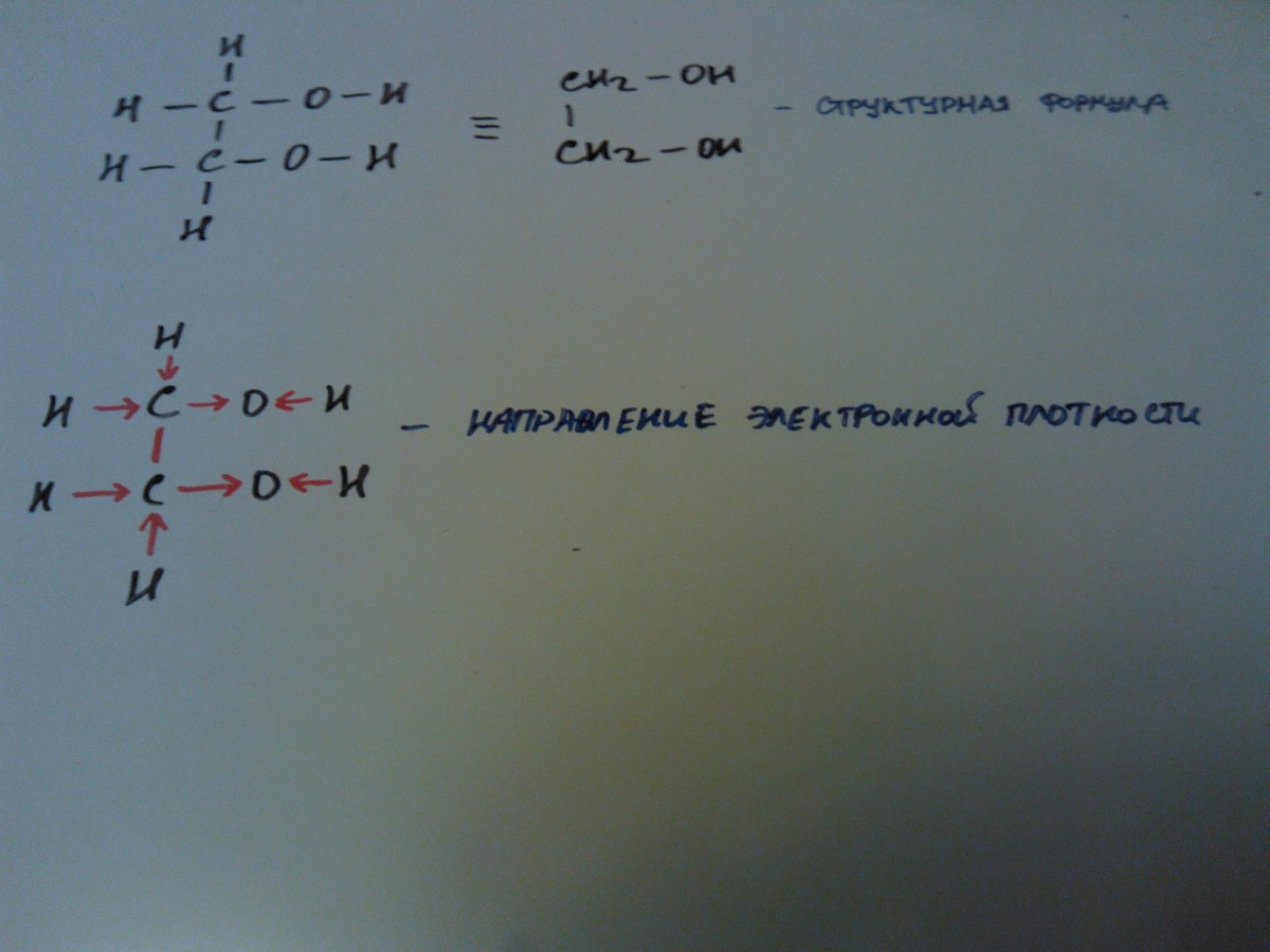 Зобразіть структурну формулу молекули етиленгліколю і покажіть стрілками зміщення в ній електронної густини.