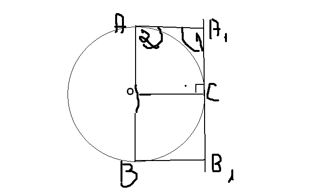 Рассмотрим,окружность ,кторорая у нас получилас ,зная ,что радиус перепендикулярен к косательной проведной в точку касания,то прямые A1B1 И AB параллельны угол1 =углу2 КАК( ПЕРЕПЕНДИКУЛЯРЫ) следовательно прямые парралельны значит расстояния межу ними равные т.е а1в1 и ав рассмотридва квадрата ,равныз значит в1с=са1 те с=12 A1B1
