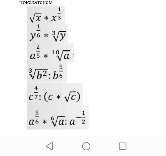 ∛b² ÷b^(5/6)=b^(2/3) ÷b^(5/6)=b^(2/3 -5/6)=b^(4/6 -5/6)=b^(-1/6)=⁶√b⁻¹=⁶√(1/b)