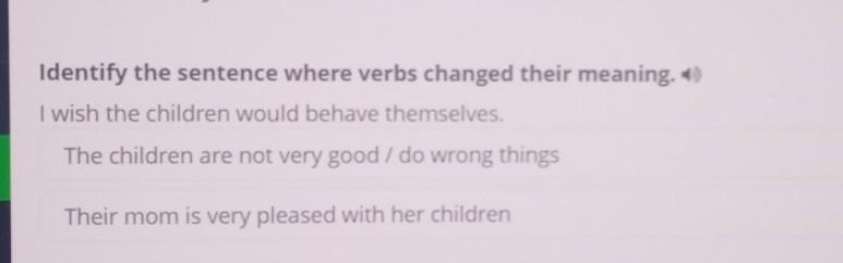 Identify the sentence where verbs changed their meaning.) I wish the children would behave themselves. The children are not very good / do wrong things Their mom is very pleased with her children