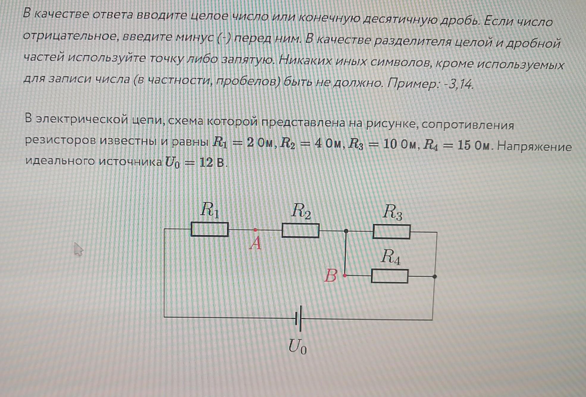 3. Какую силу тока показал бы идеальный амперметр, подключённый к клеммам А и В? Ответ выращите в А, округлив до десятых