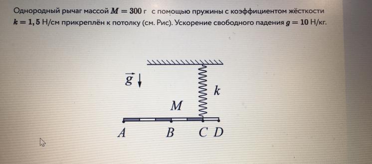 В какой точке A,B,C или D нужно прикрепить дополнительный груз , чтобы рычаг находился в равновесии