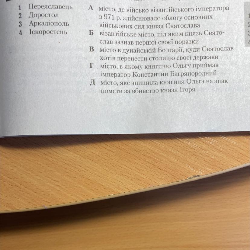 4. Іскоростень — Д. місто, яке знищила княгиня Ольга на знак помсти за вбивство князя Ігоря.