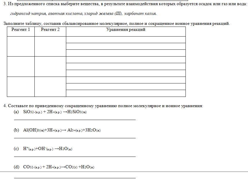 а) K2SiO3 + 2HCl → 2KCl + H2SiO3