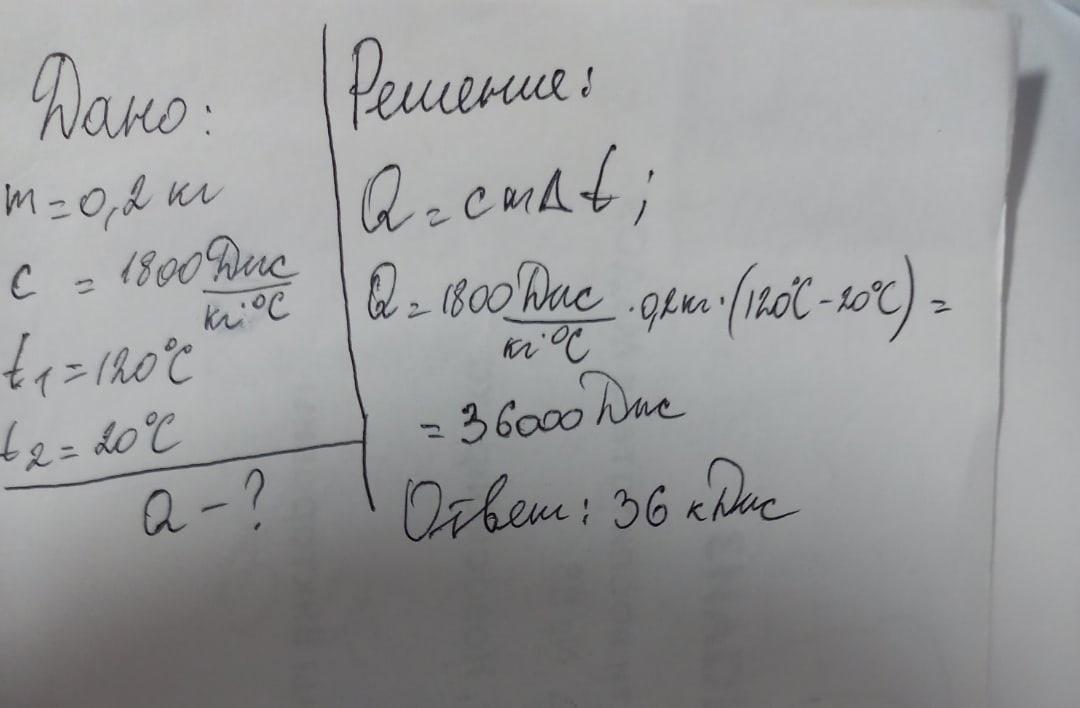 7 Після приготування їжі на сковороді залишилося 200 голії за температури 120 °C. Яка кількість теплоти виділиться під час остигання олії, якщо температура в кімнаті 20 °С? Дано: Розв'язання: =0,2 кг Дж с = 1800 кг. °C to F = t= Знайти: QE ?