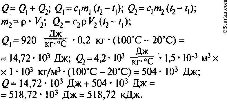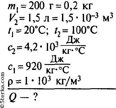 Определи, какое количество теплоты получили алюминиевая кастрюля массой 361 г и находящаяся в ней вода объёмом 1,2 л при нагревании от 21°C до кипения при температуре 100°C. Удельная теплоёмкость алюминия равна 920 Дж/(кг·°C), удельная теплоёмкость воды — 4200 Дж/(кг·°C), плотность воды — 1000 кг/м³.