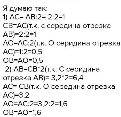 точка C середина отрезка AB. о середина отрезка AC найдите a CB ao и Ob если AB равен 2 смB AB AC и ao и Ob если CD равен 32