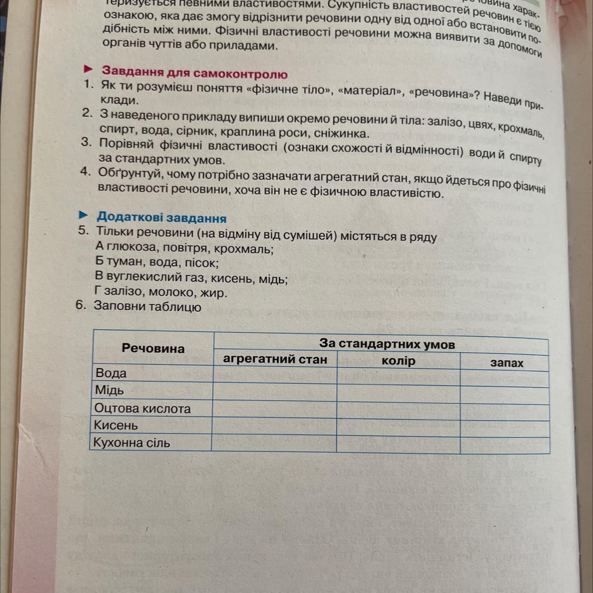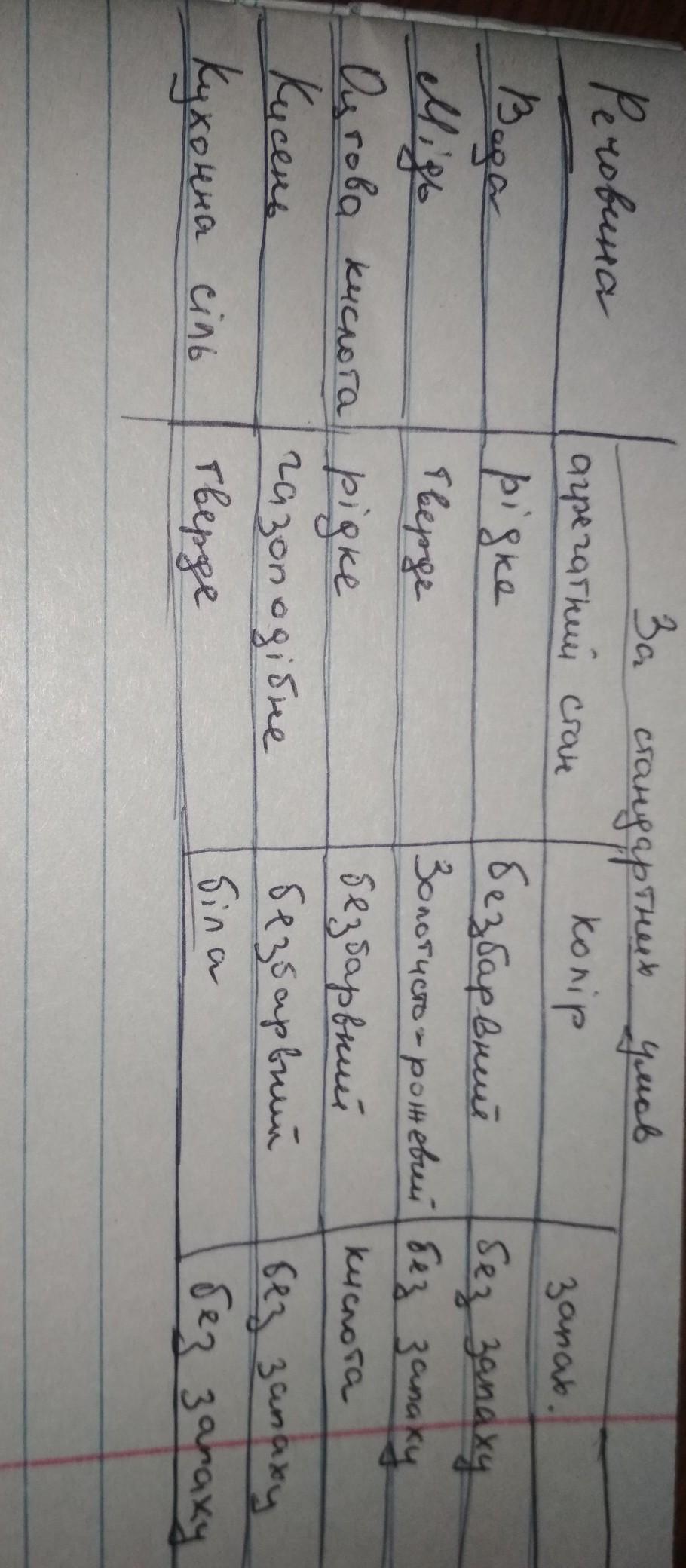 Речовина | Агрегатний стан | Колір | Запах