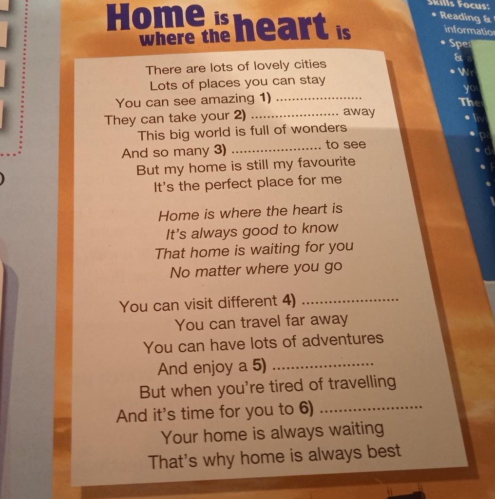 Song: Read the song and fill in the words from the list. Listen and check. yings. • holiday • buildings • places • breath • rest. • sights