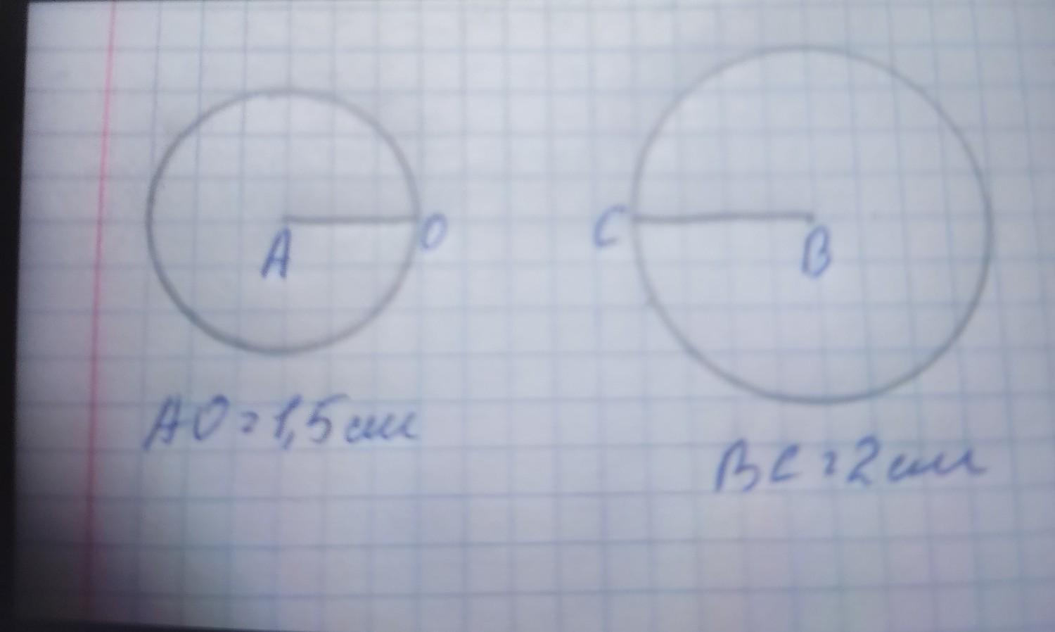 Построй окружности с центрами в точках A и B. Проведи в каждой из них радиус. Измерь и запиши длину радиуса.