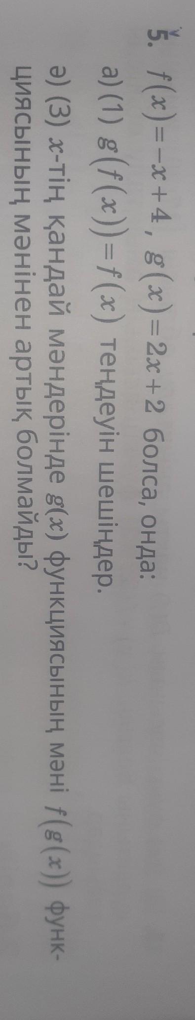Если f (x) = - x + 4, g (x) = 2x + 2, то: a) Решите уравнение (1) (f (x)) = f (x). б) При каких значениях (3) x - значение функции g (x) не превышает значения функции (g (x)? 2x -1 и f (x) =
