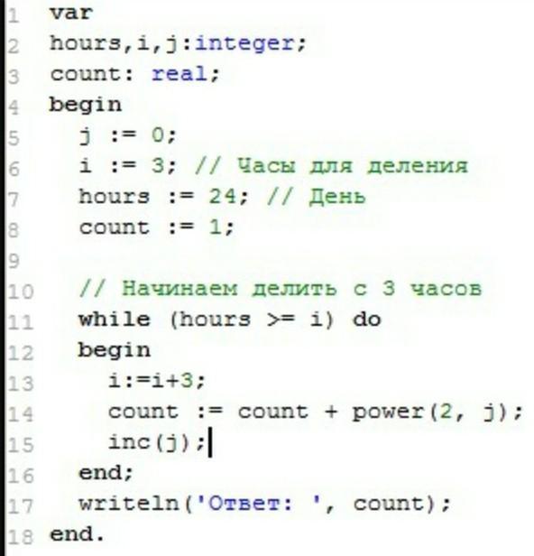Составь программу на языке Питон для решения задачи биологического моделирования: Одноклеточная амеба каждые 3 часа делиться на 2 клетки. Какой станет численность колонии амеб через 24 часа от начала отсчета?