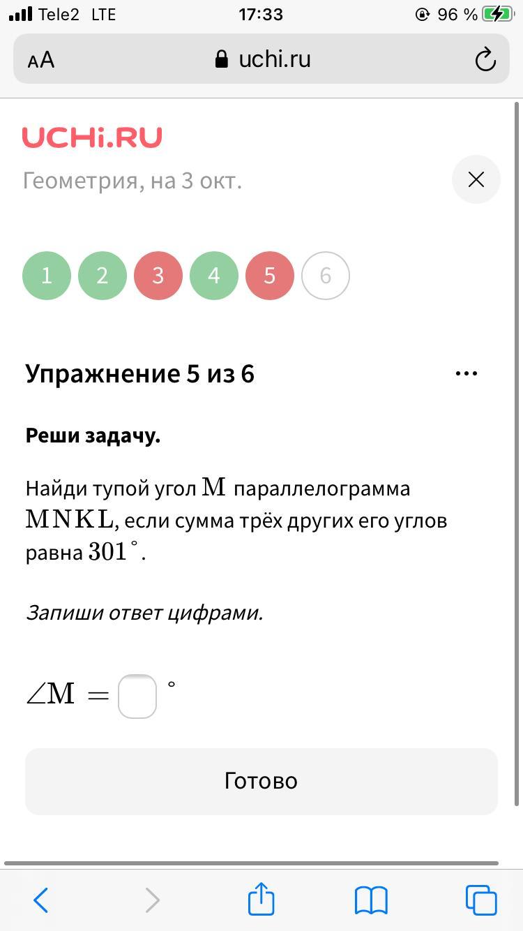 Поскольку сумма всех внутренних углов параллелограмма равна 360гр, то найдем неизвестный угол - 360-301=59гр. У параллелограмма противоположные углы равны, тогда и противоположный будет 59гр.