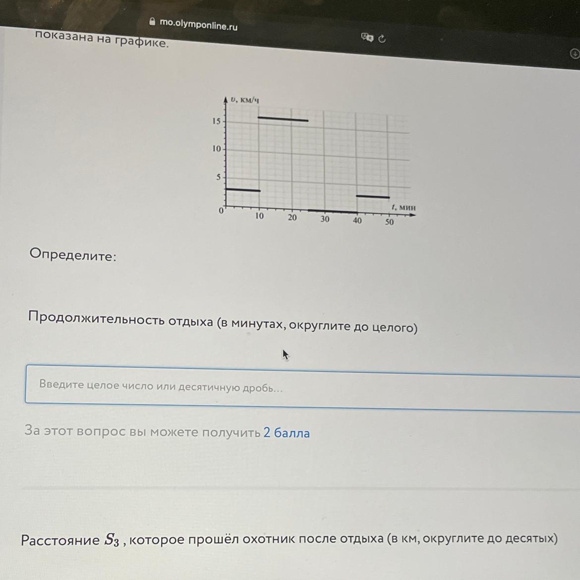 S₃ = V₃·Δt₃ = 3·(1/6) км = 0,5 км