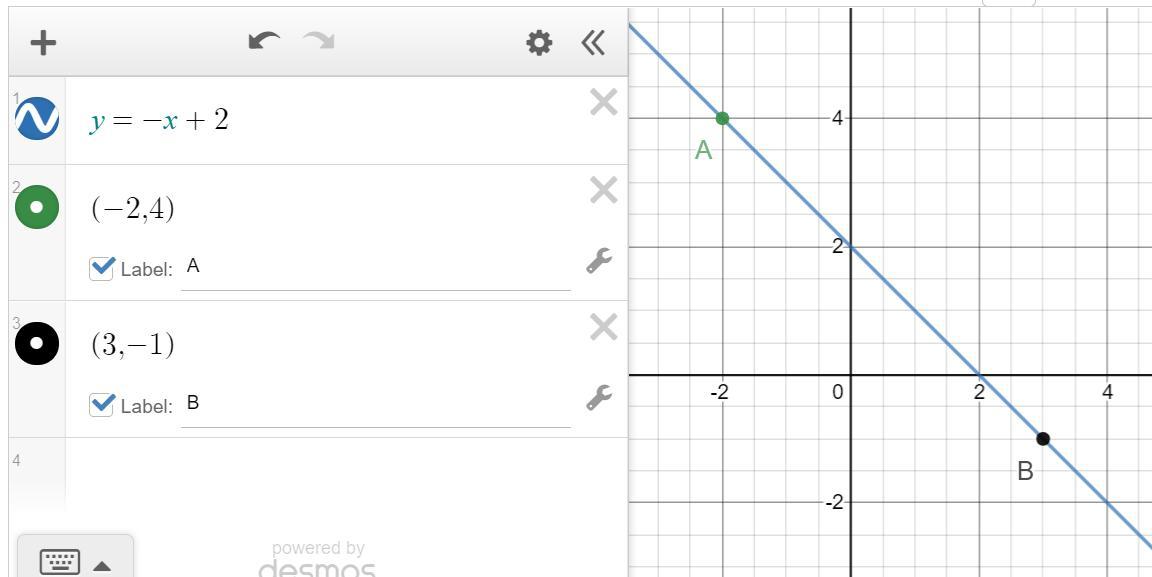 Запишите уравнение прямой, проходящей через точки A (-2; 4), B (3, -1). Найдите точки пересечения данной прямой с осями абсцисс и ординат.